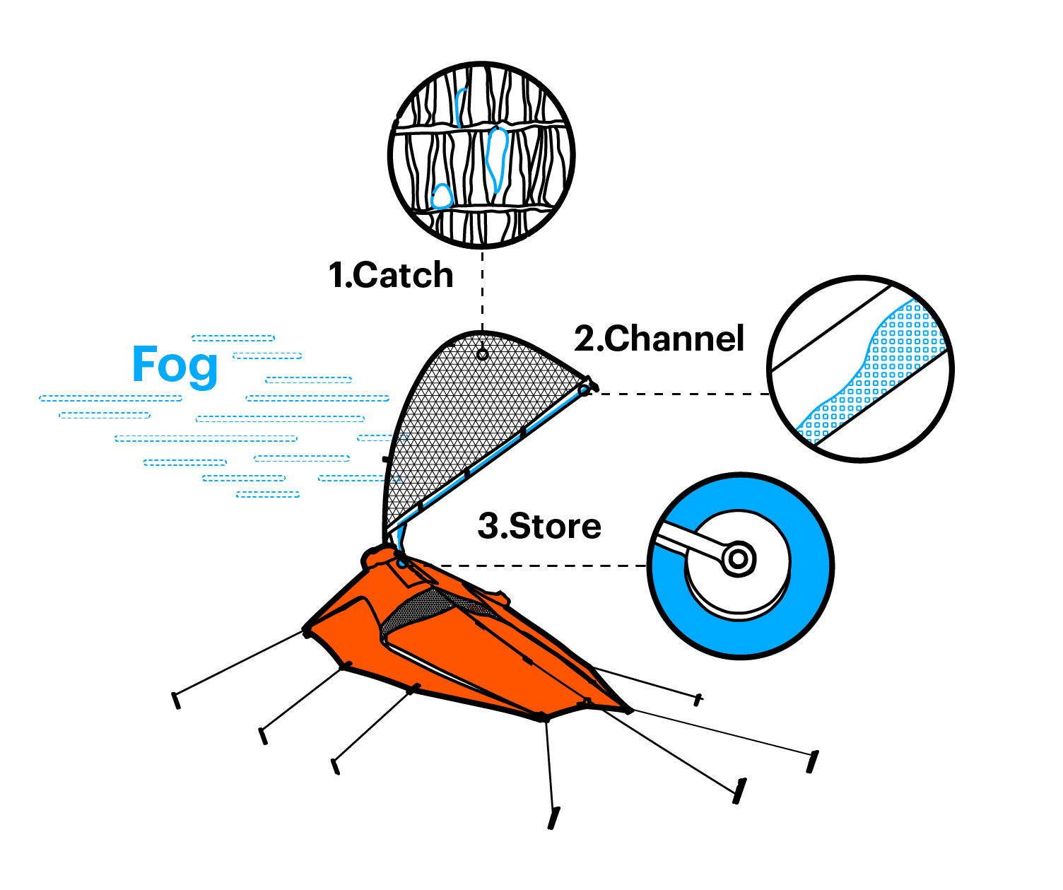 The Atacama Desert is the driest non-polar area on the planet, similar to the extreme environments on Mars. Through billions of years, life has learned to adapt to the harsh conditions in the Atacama Desert. Plants such as the Cactus have developed strategies in how to harvest and contain water from coastal fog. These intelligent systems have been studied in the making of the Fog-X Jacket.